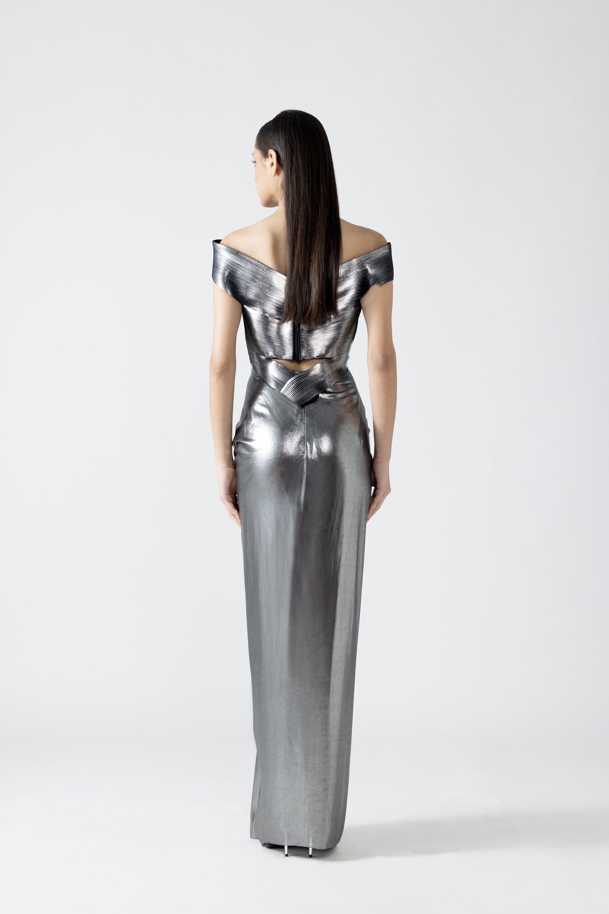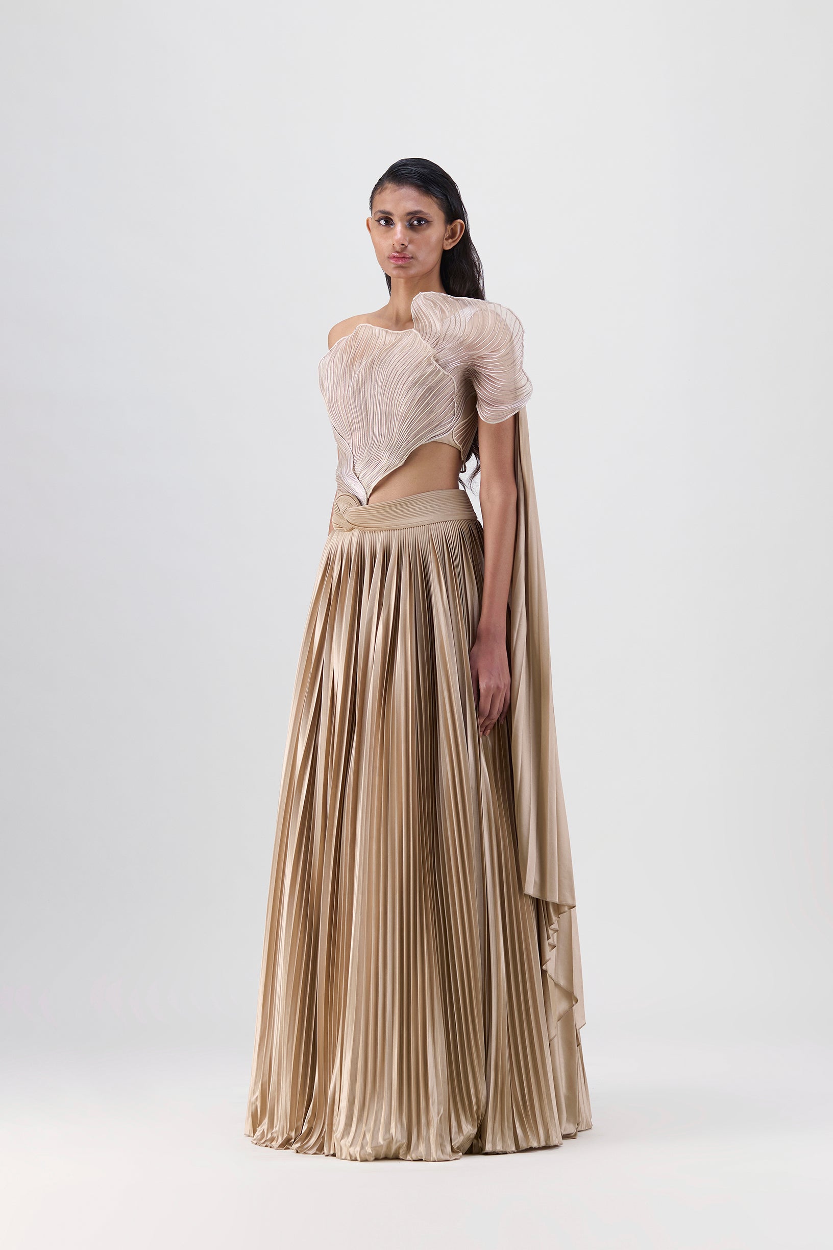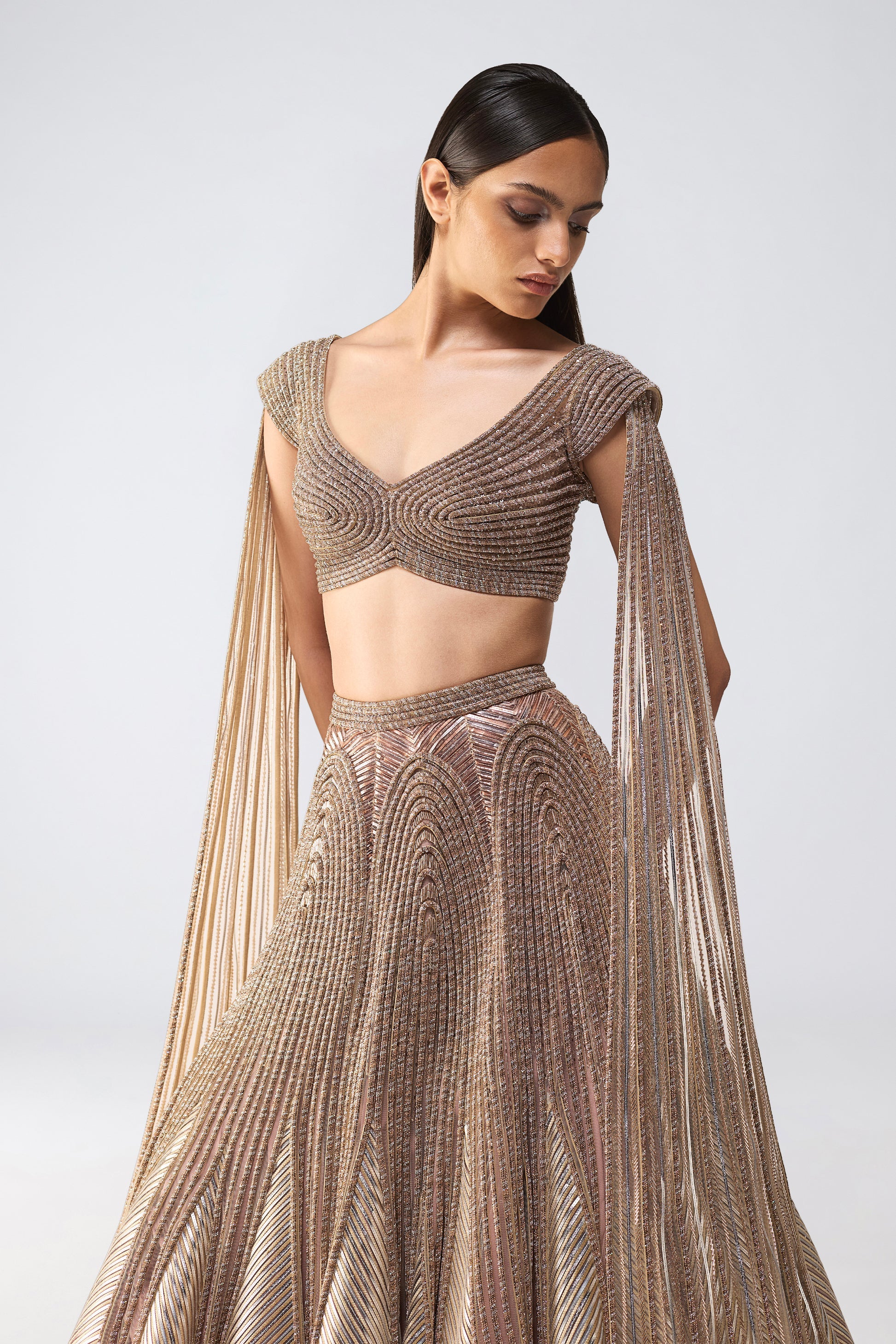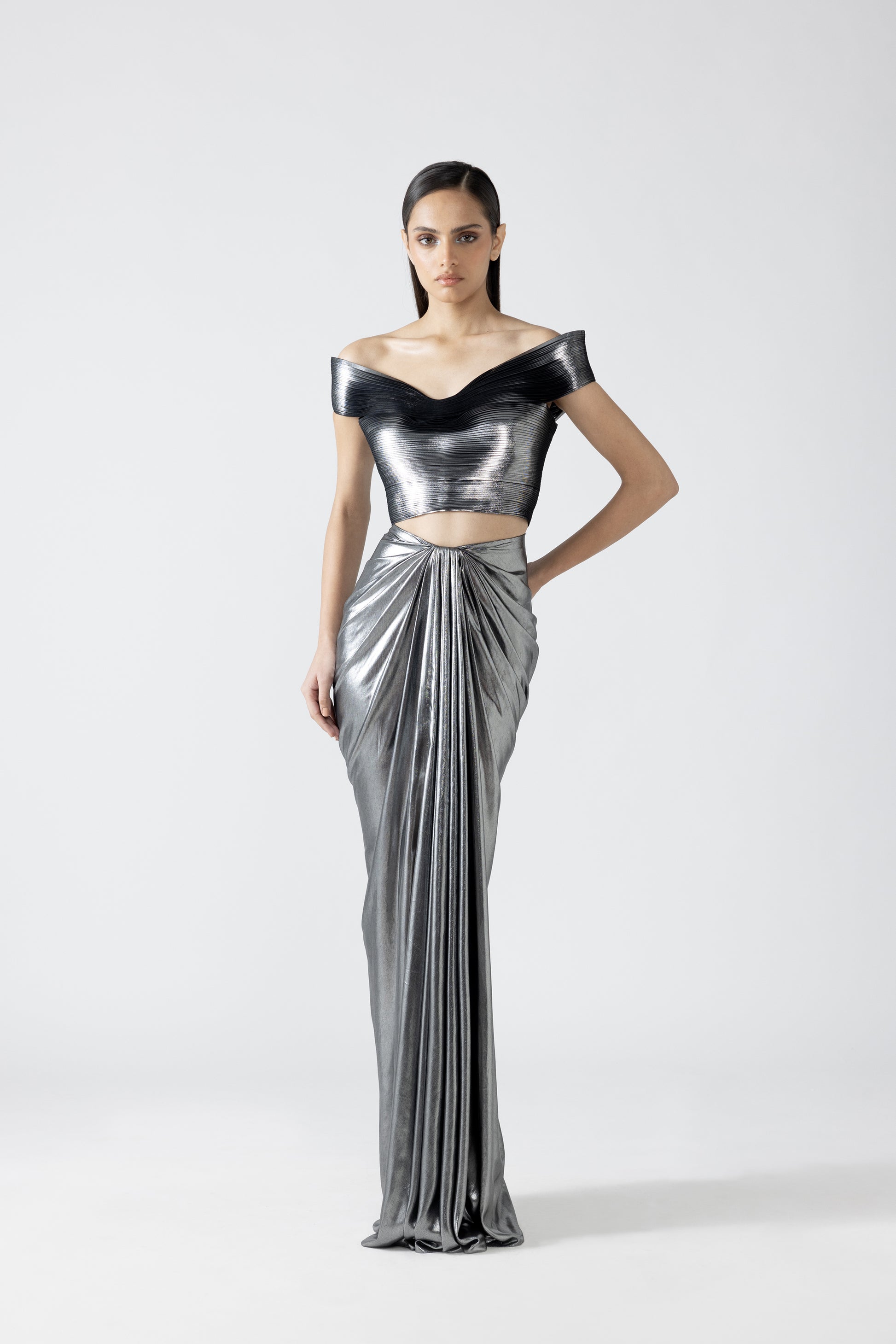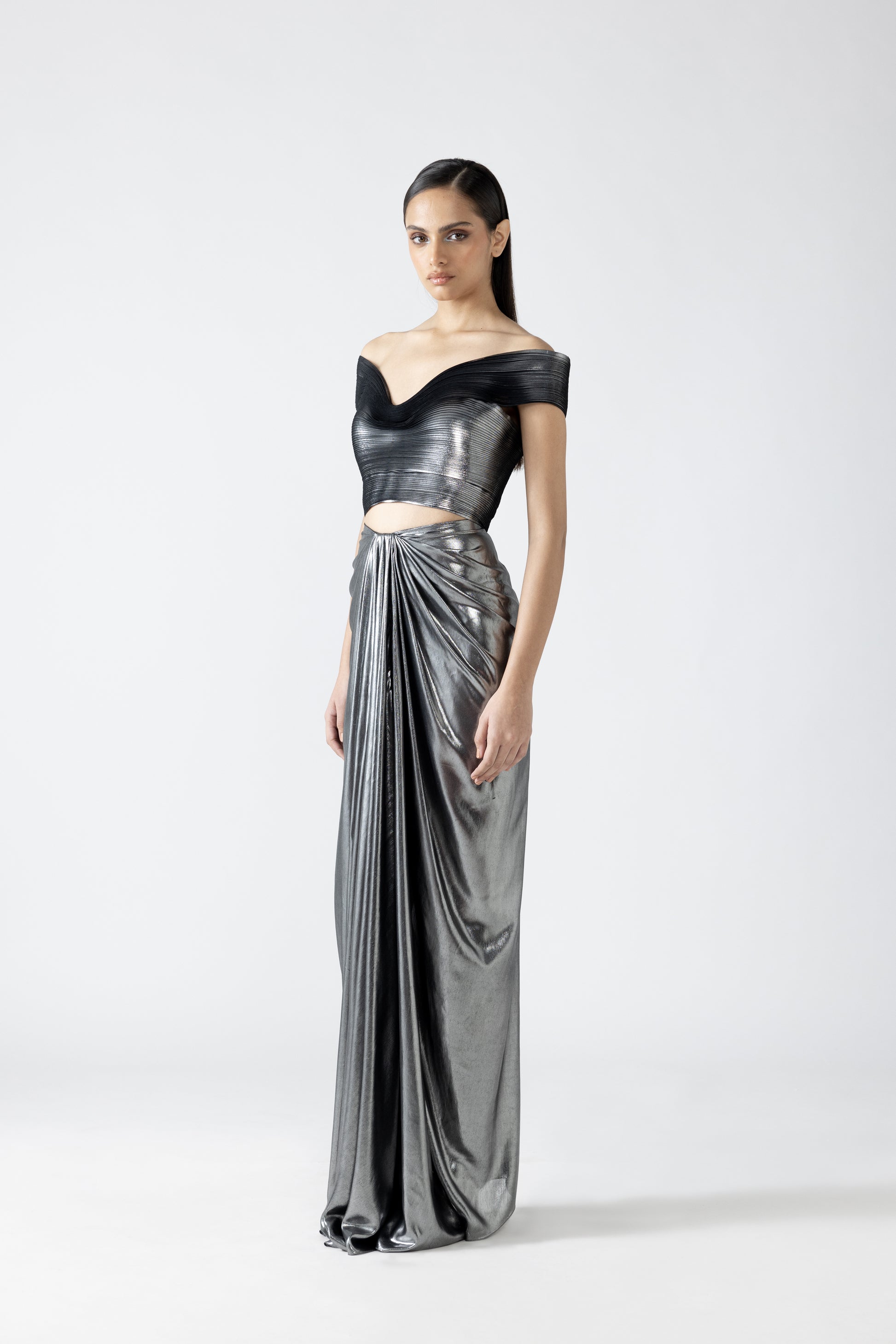 Metallic Top And Skirt With A Sunray Drape