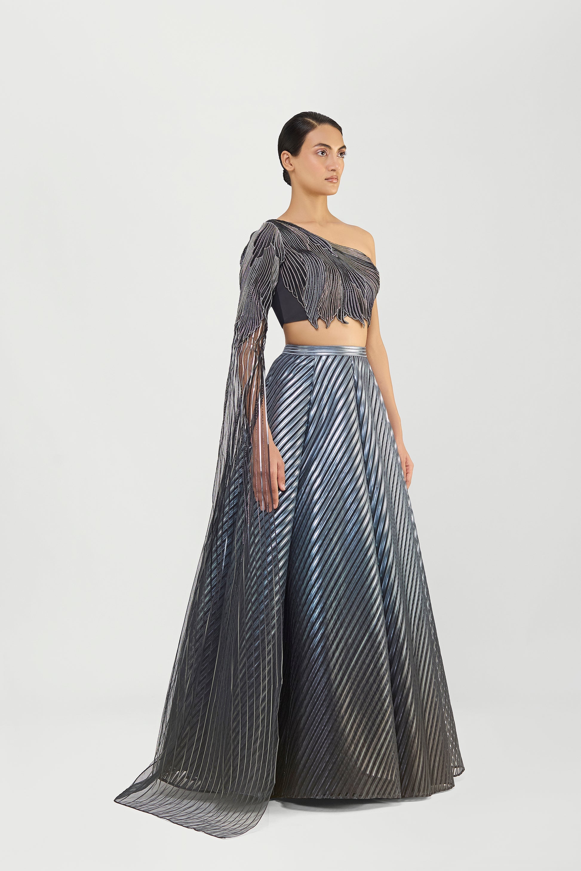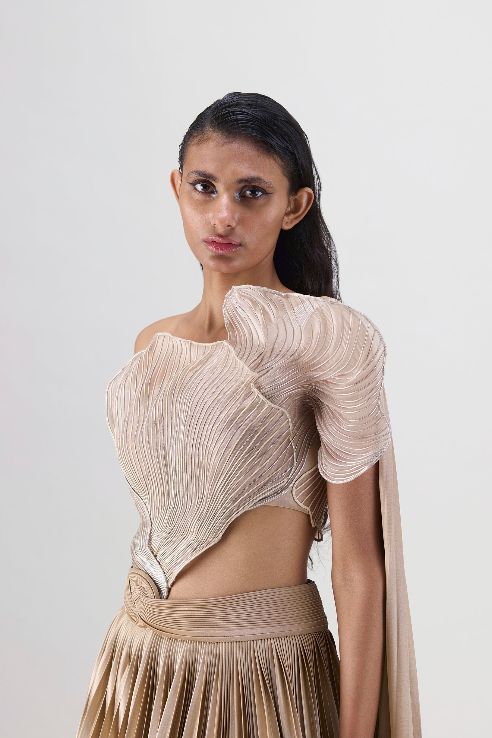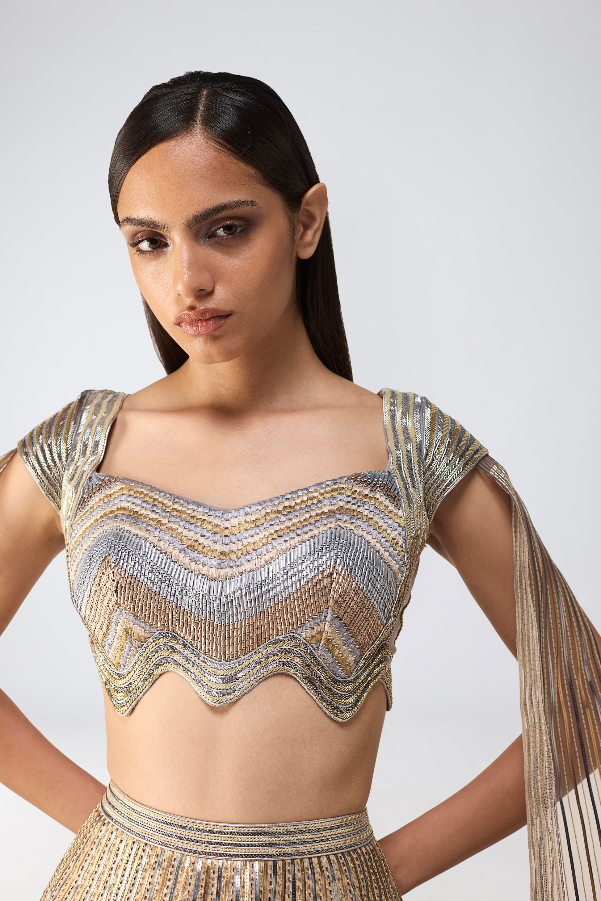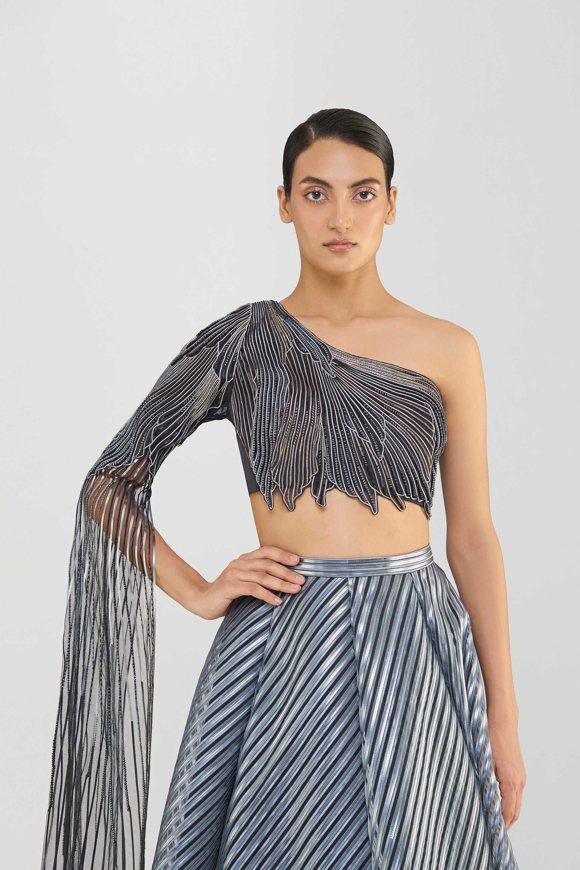 Metallic Top And Skirt With A Sunray Drape