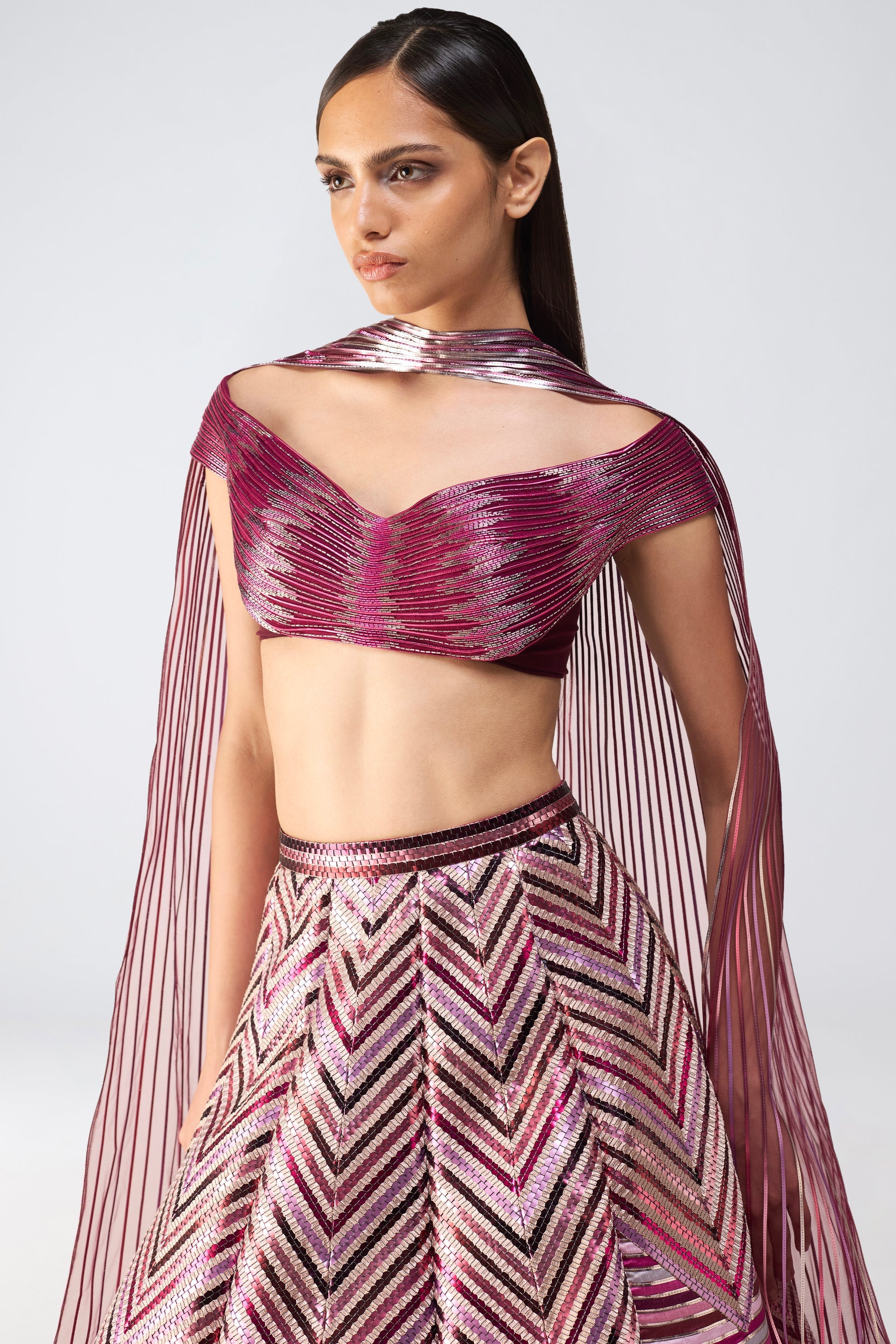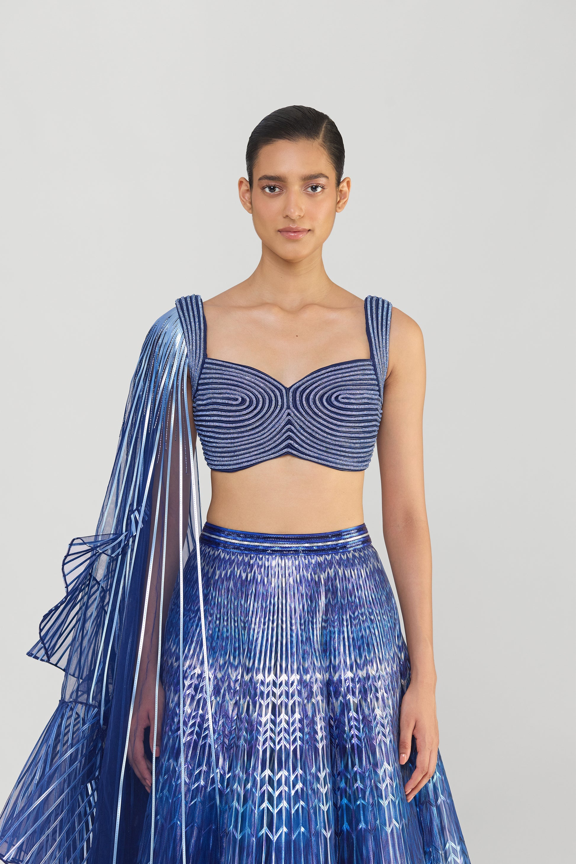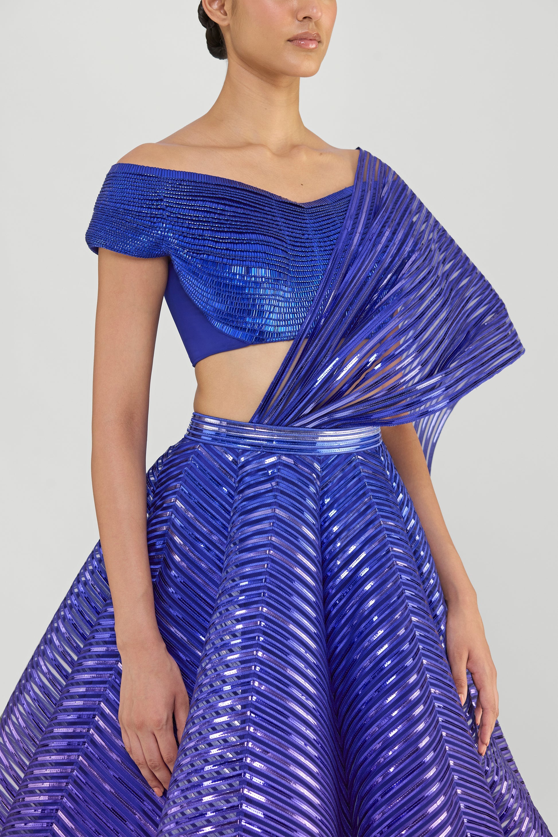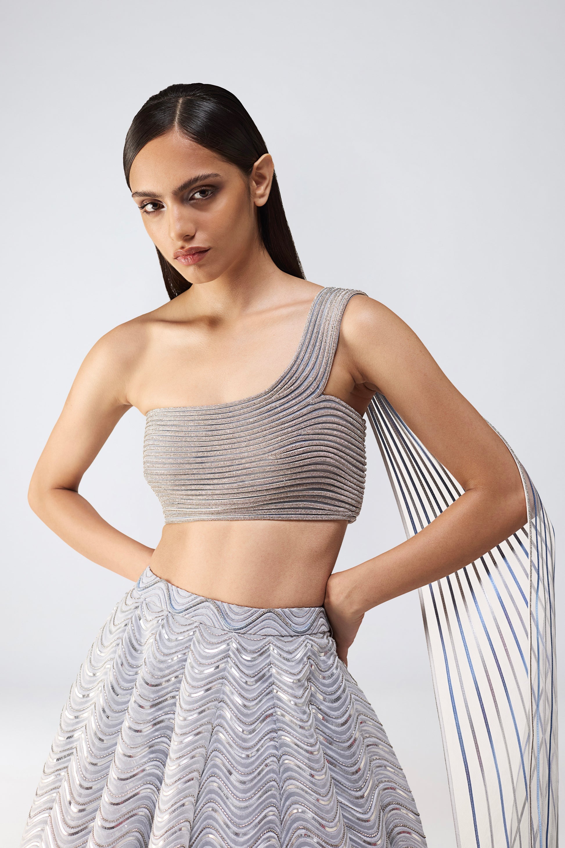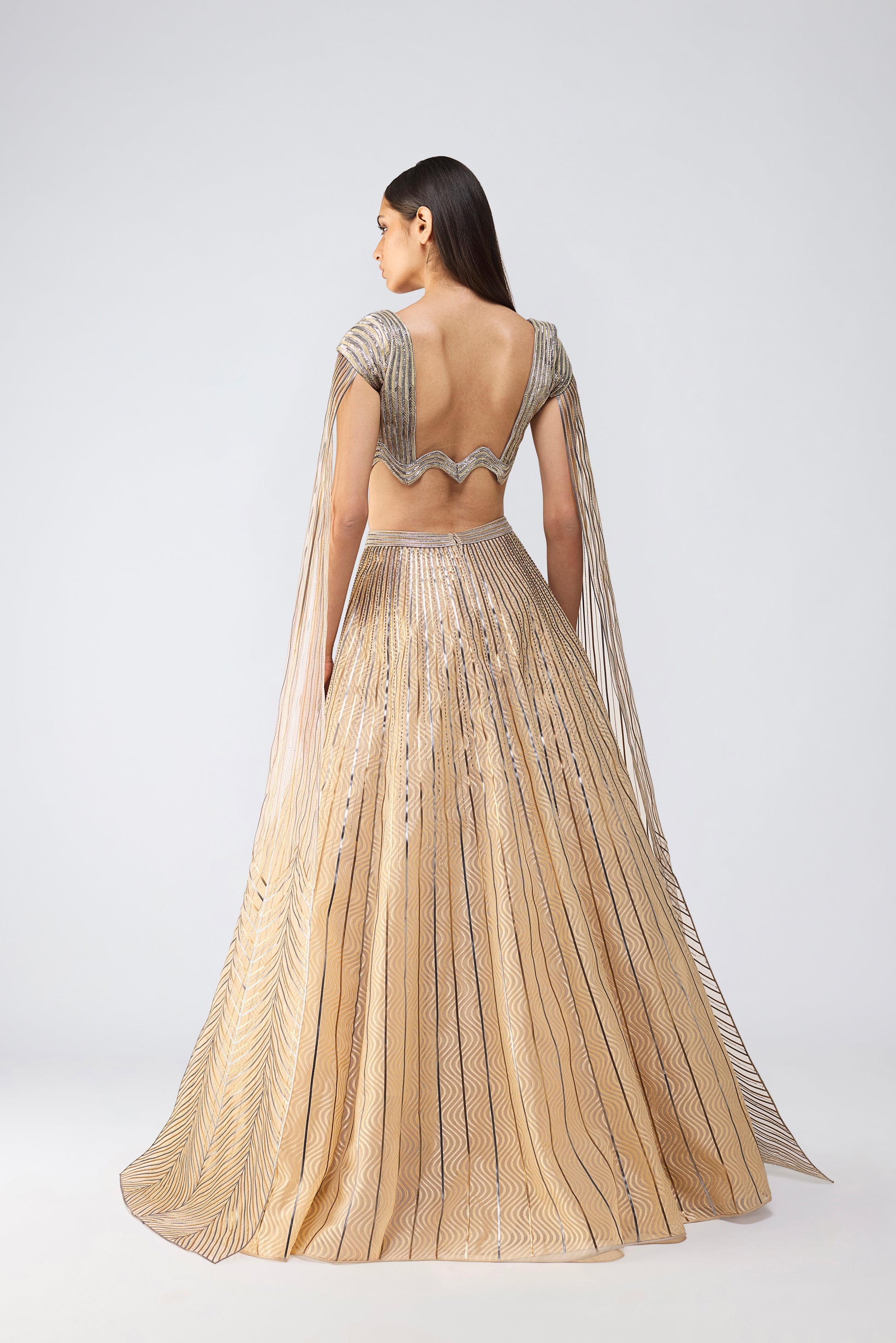Metallic Top And Skirt With A Sunray Drape
