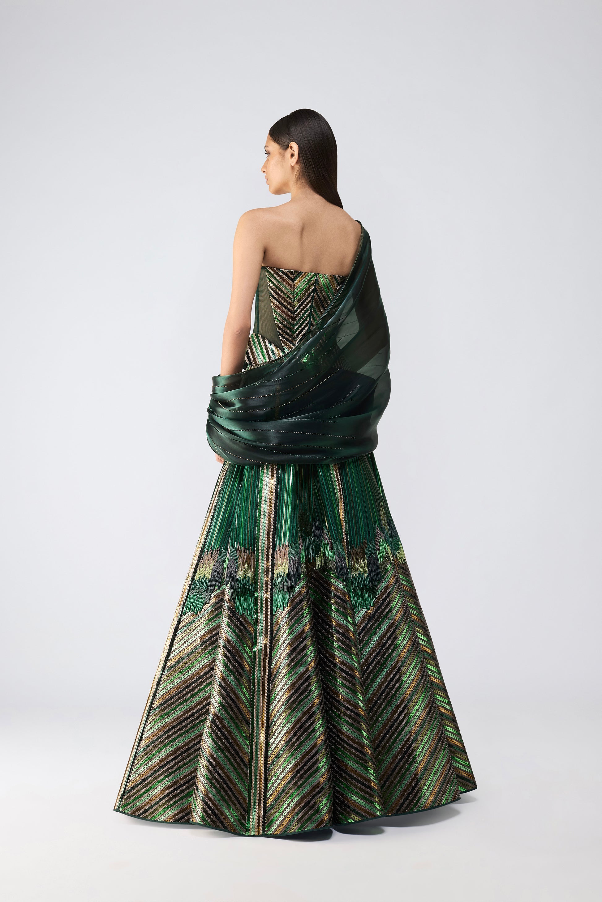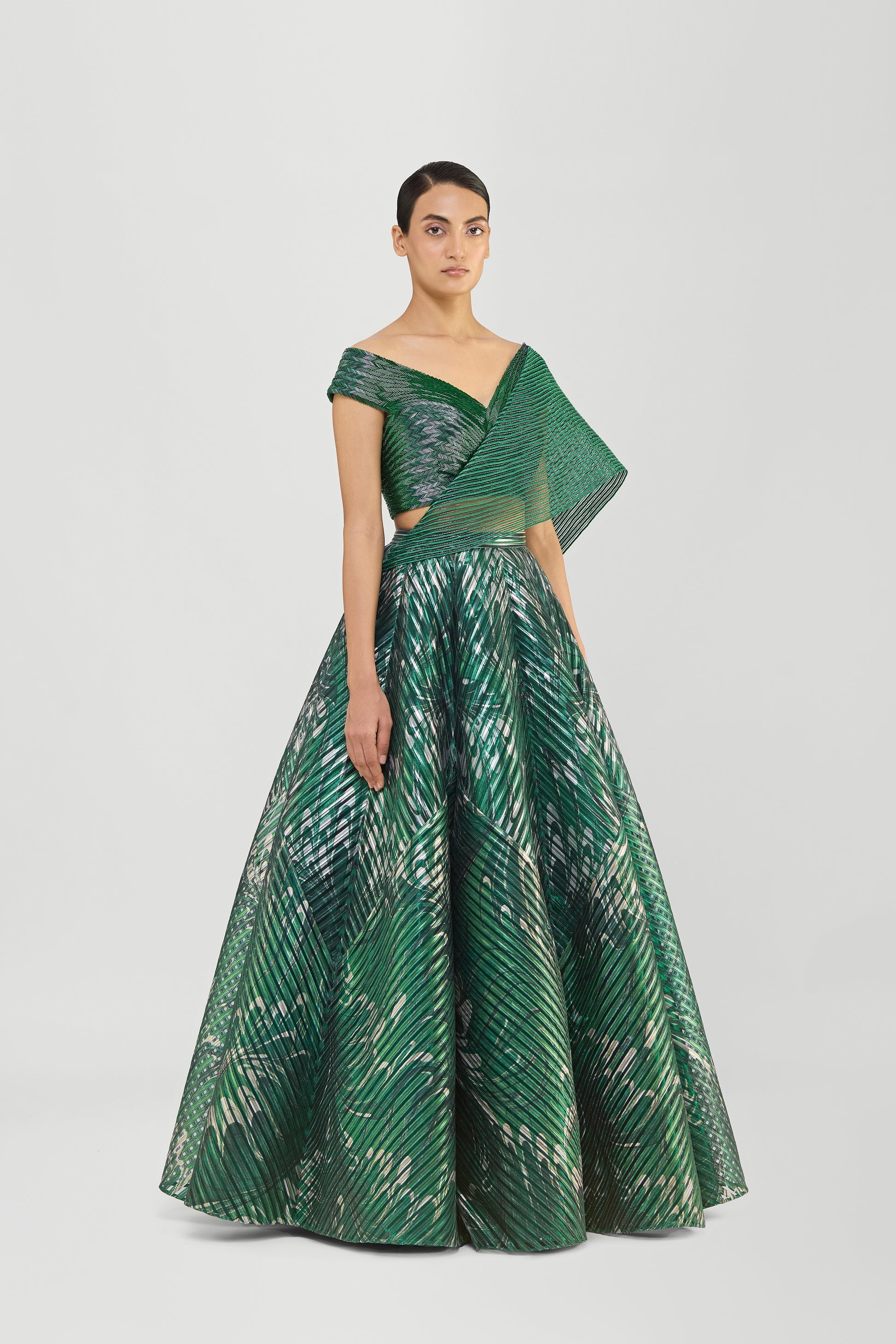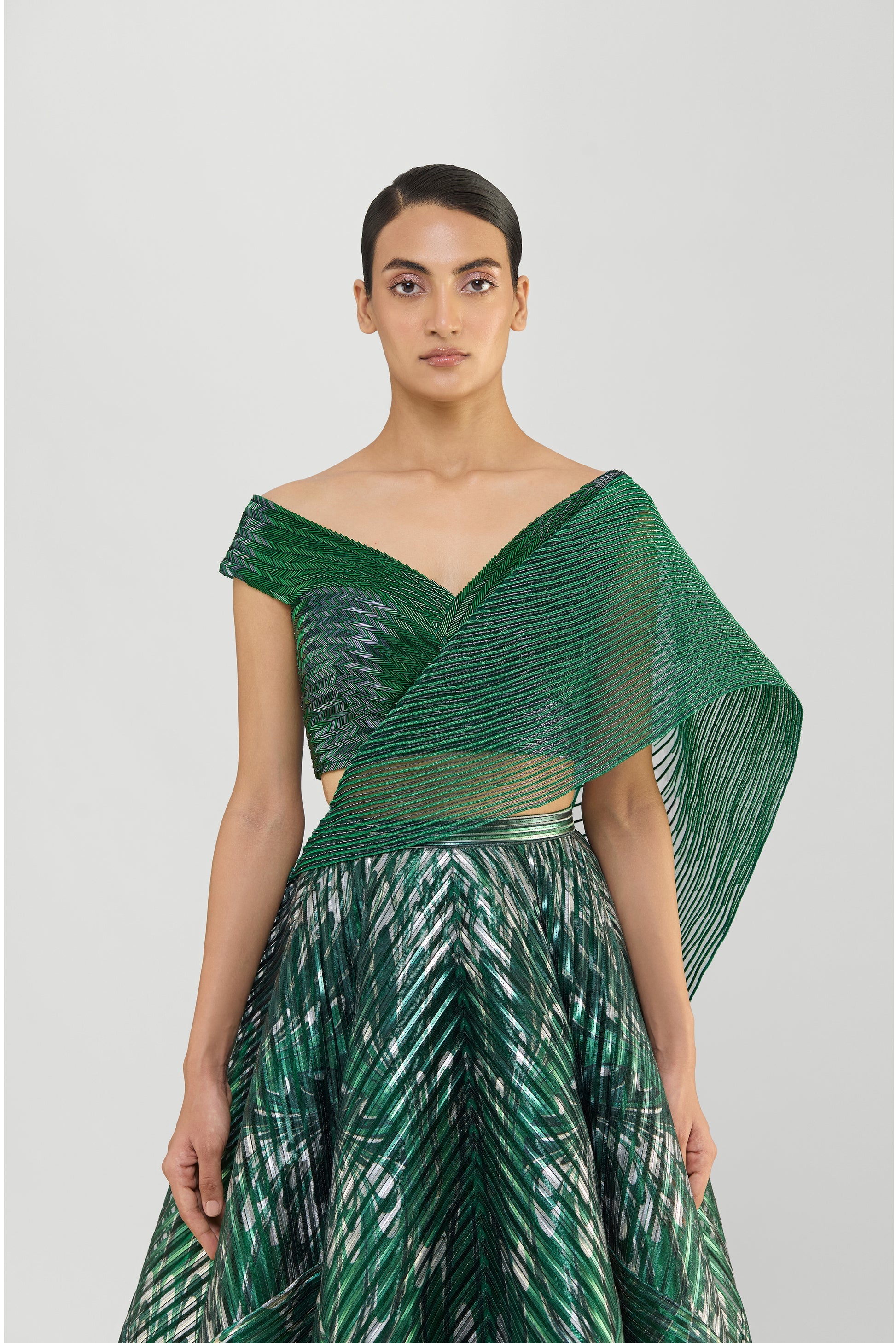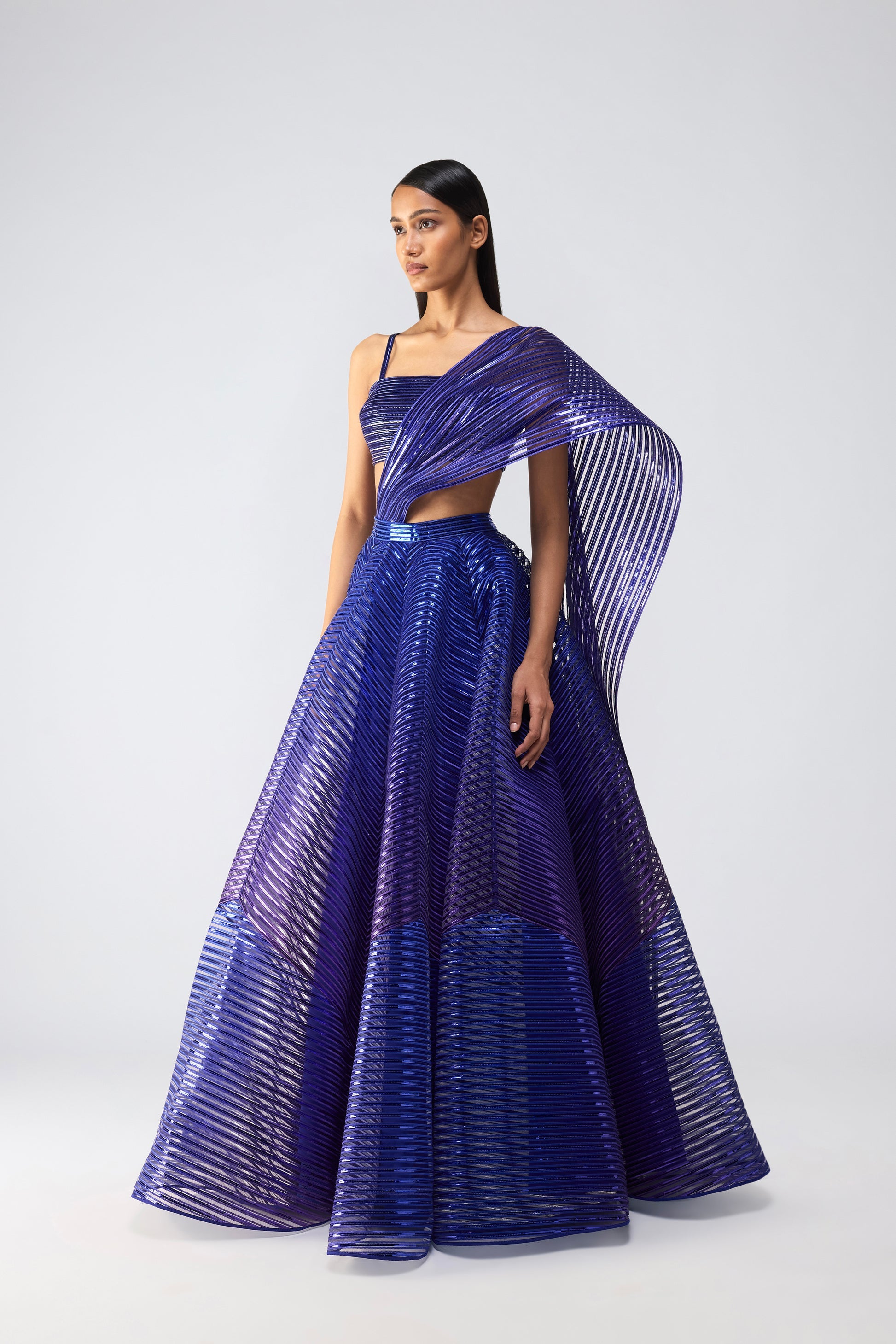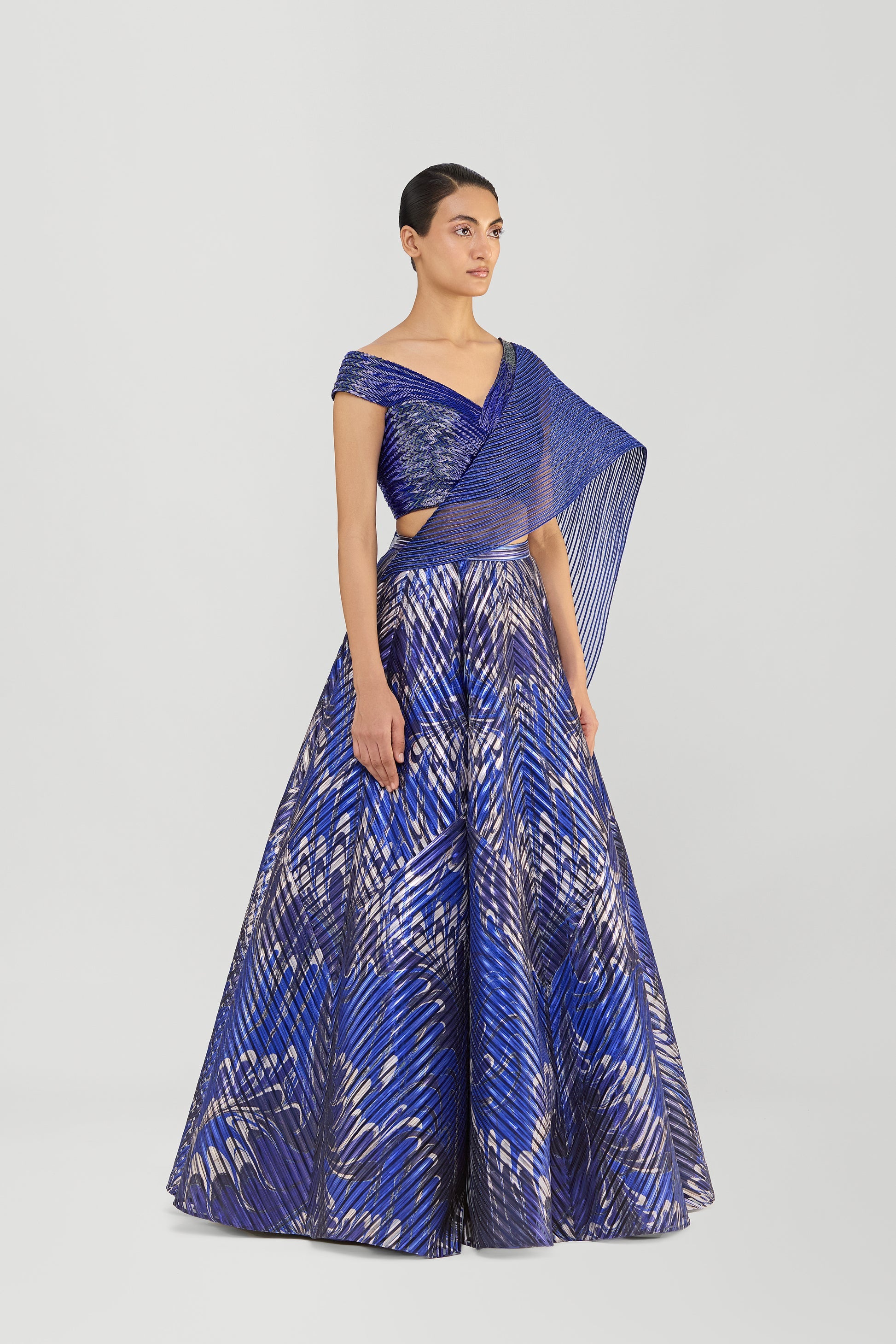 Metallic Top And Skirt With A Sunray Drape