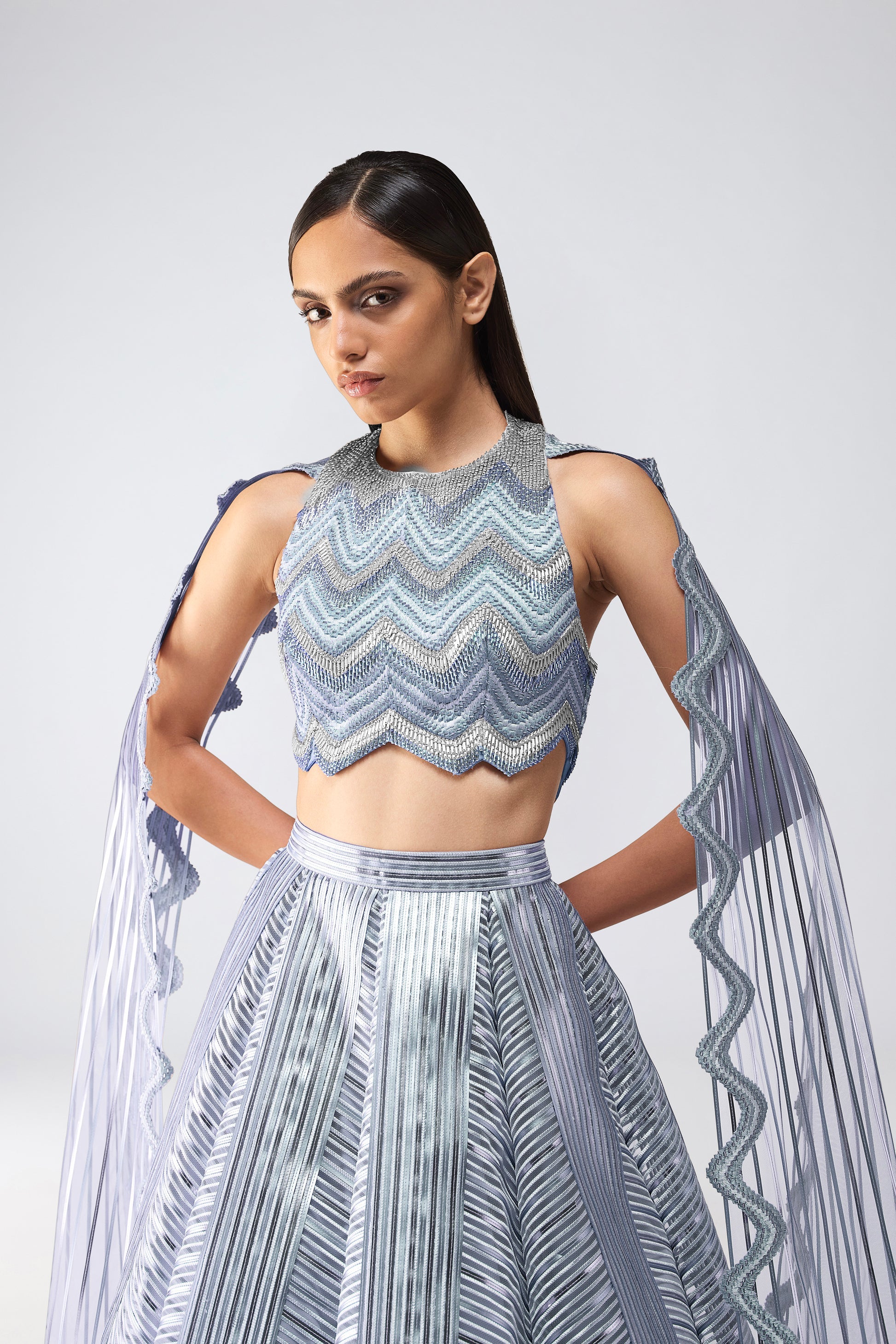 Structured Crystalvein Top And Wave Skirt - Ice