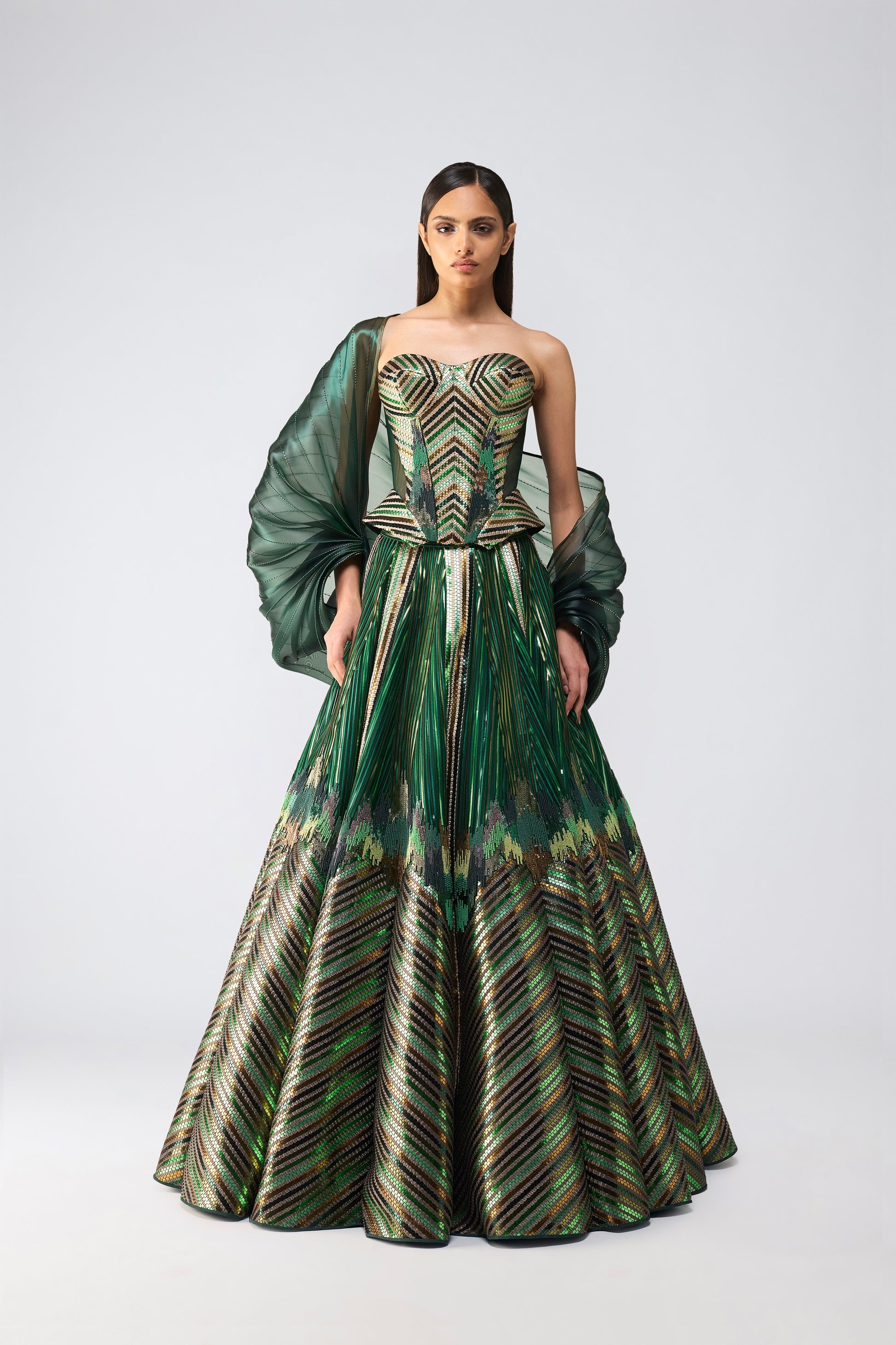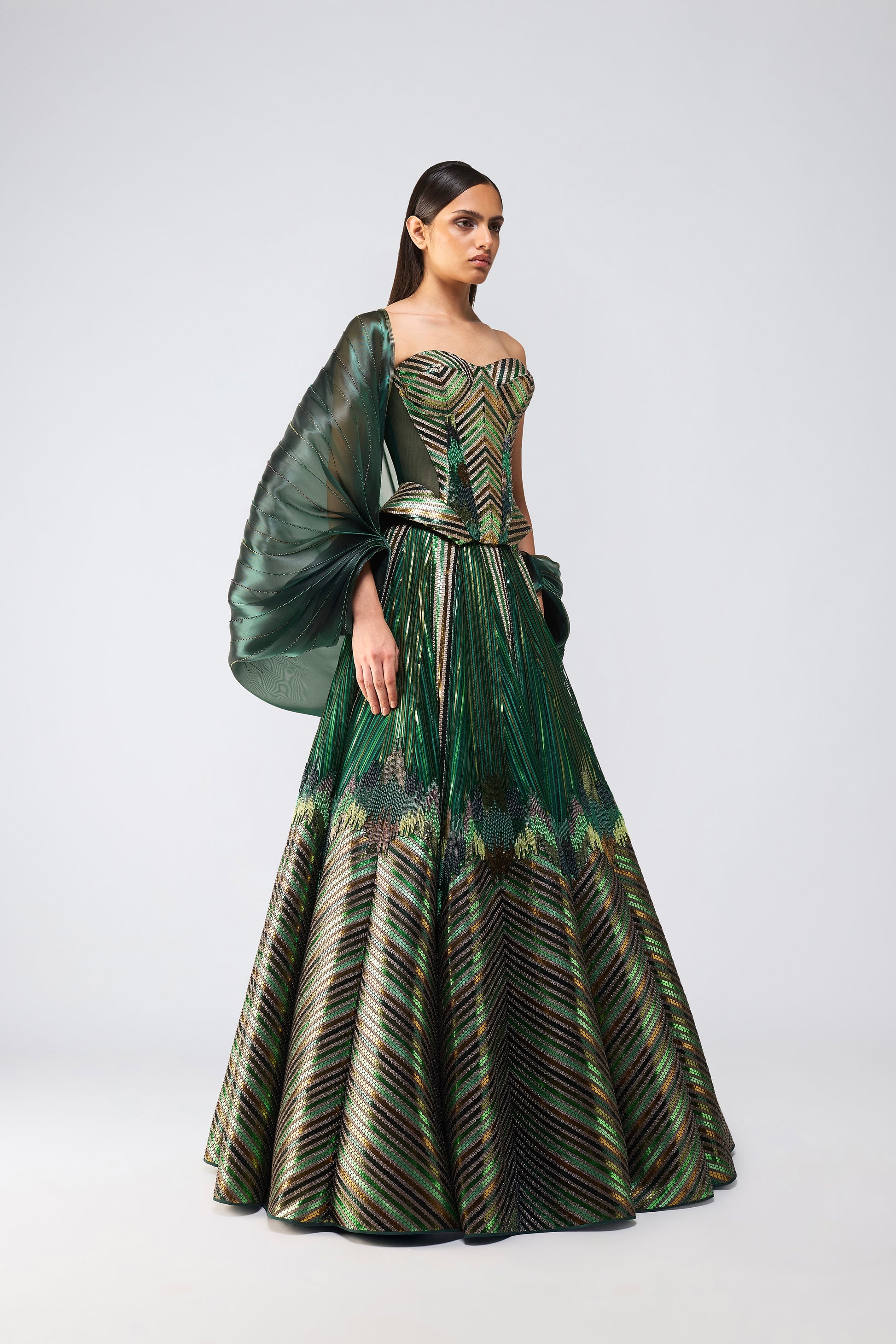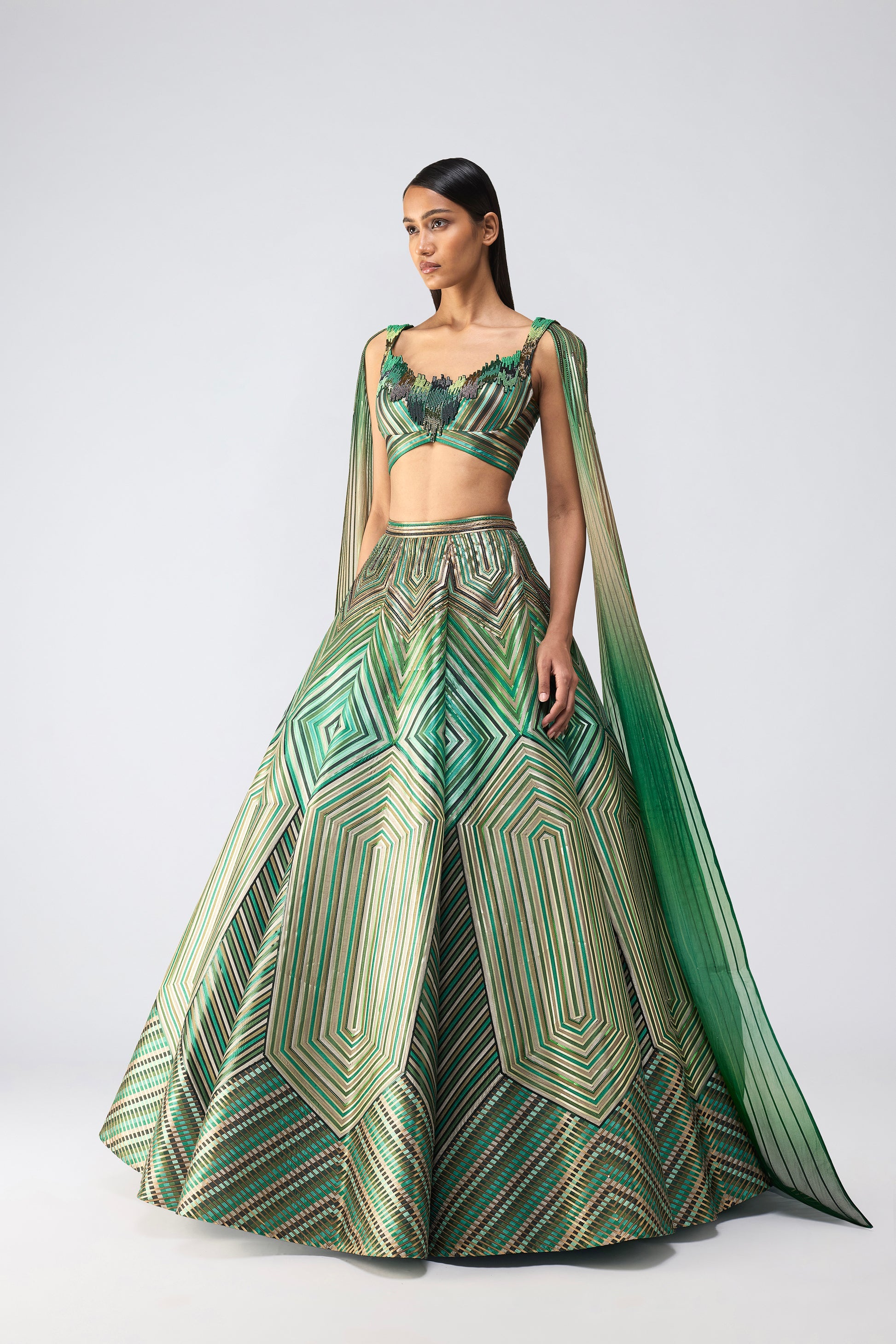 Metallic Supersonic Corset Skirt And Cape - Emerald
