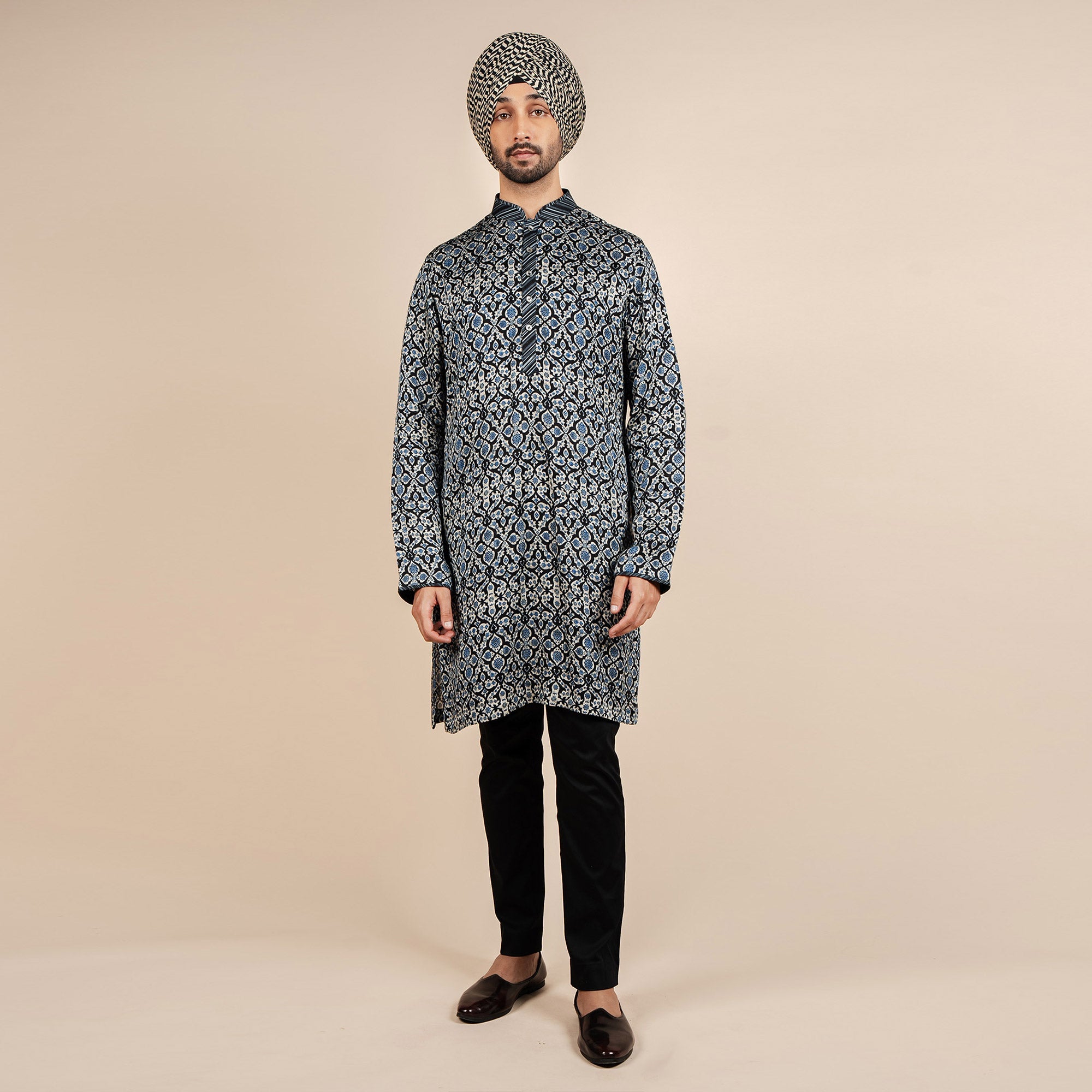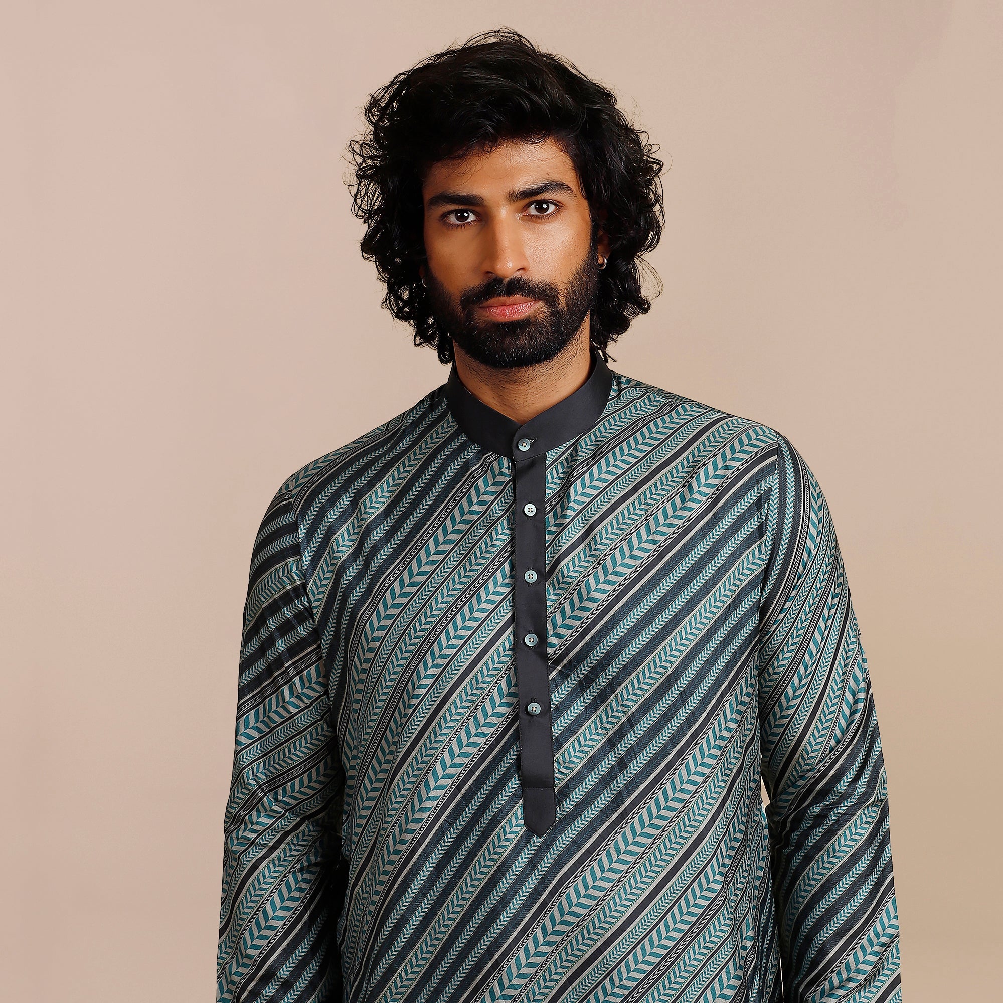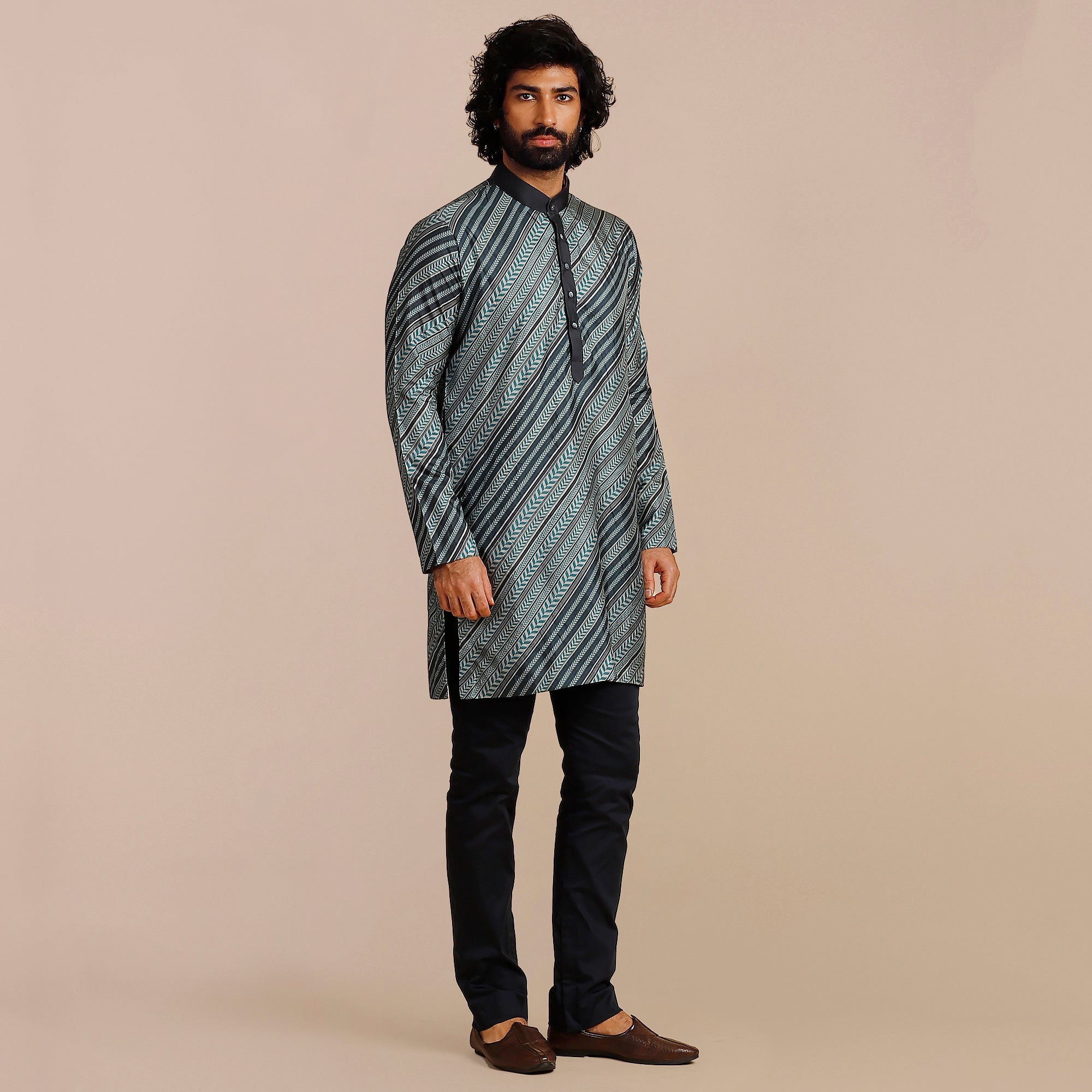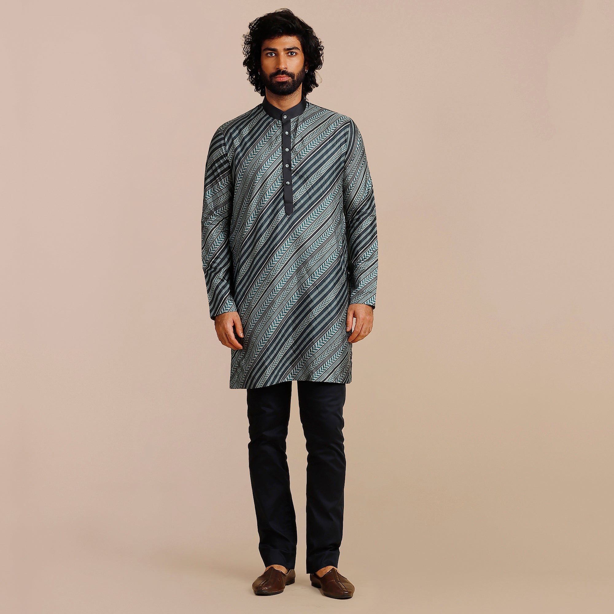 Teal Blue Chevron Kurta
