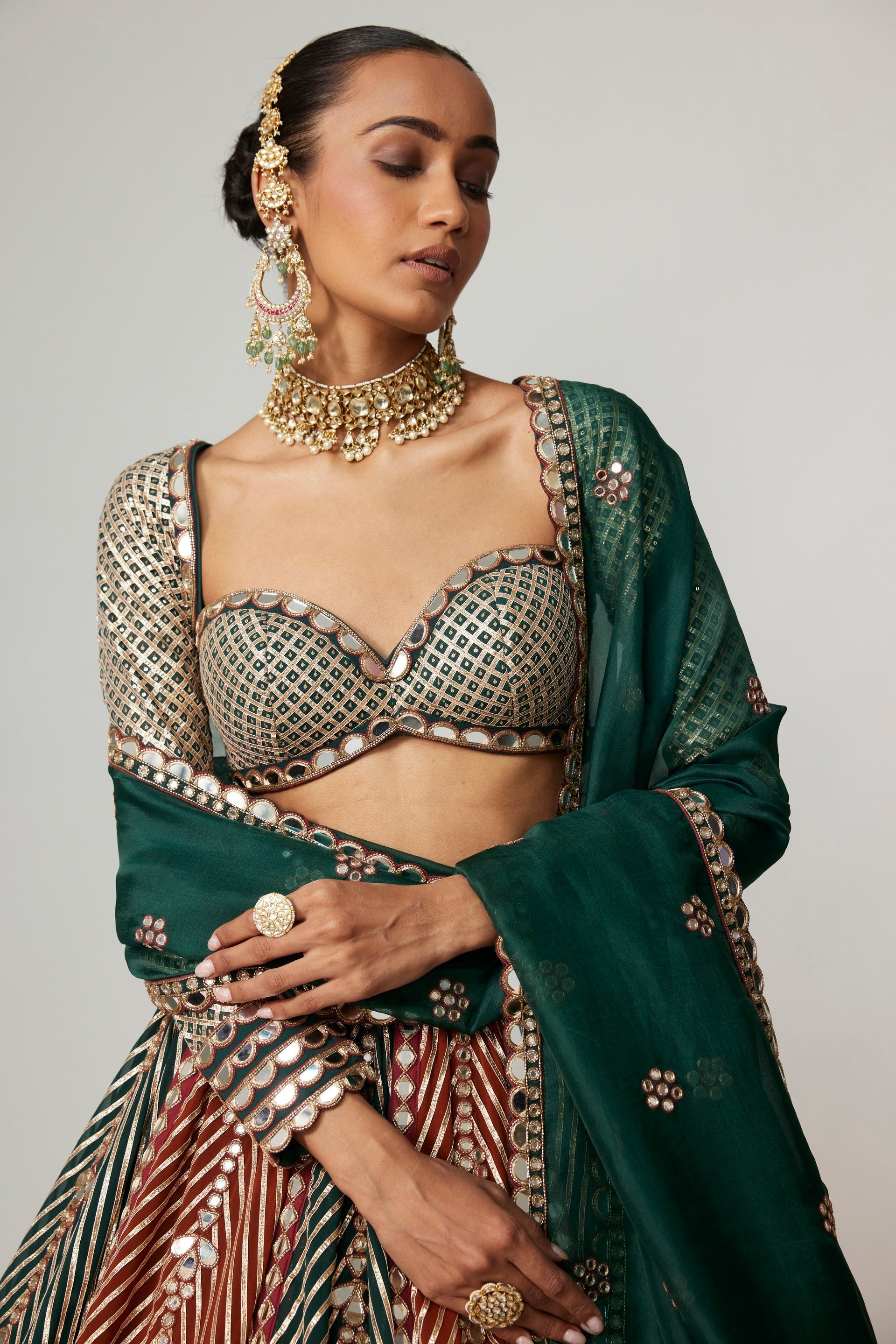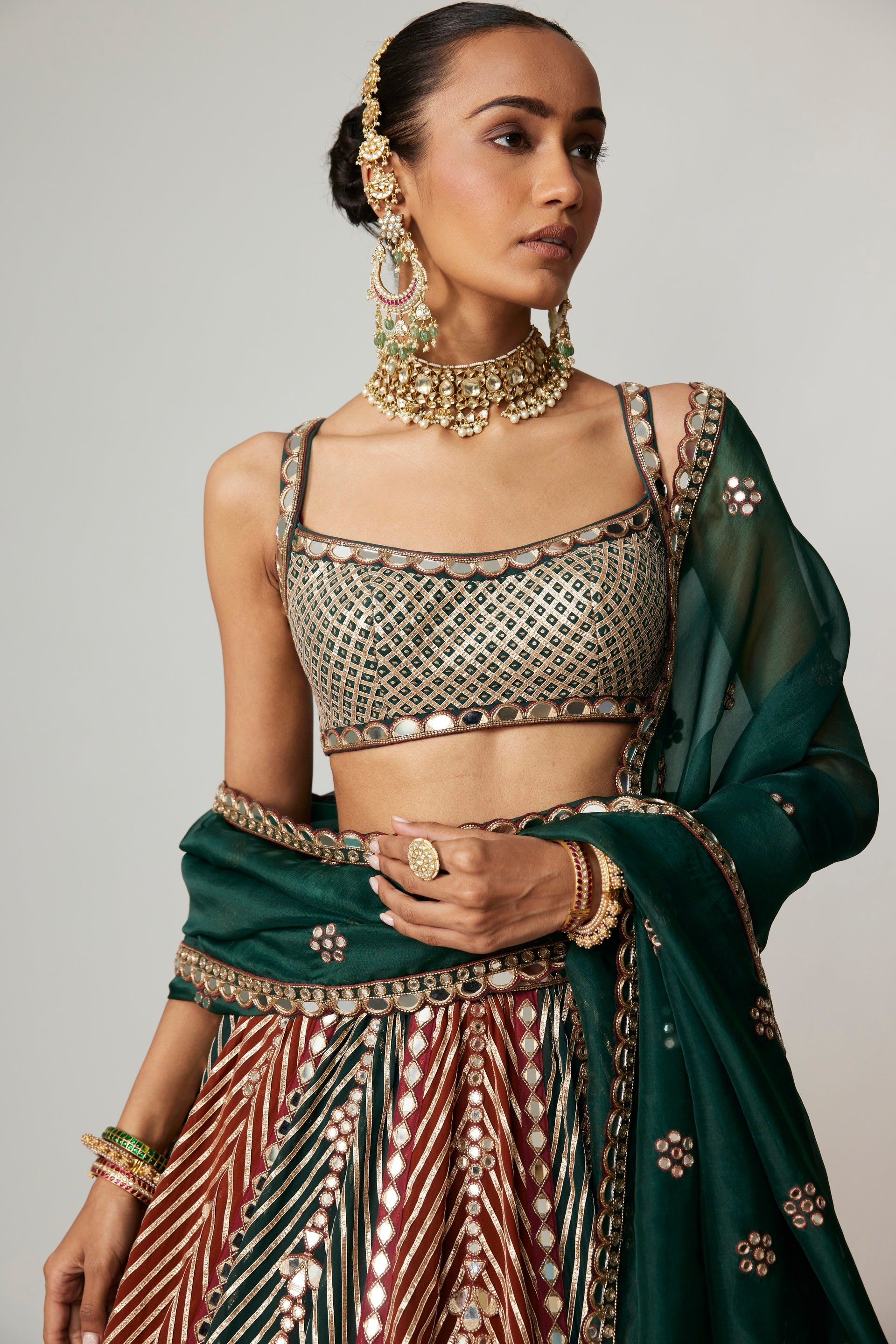 Green Lehenga Pants Set