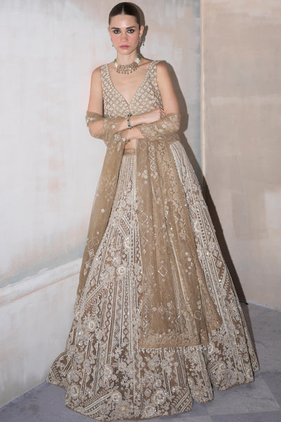 The Wild Ocean Ekru Lehenga