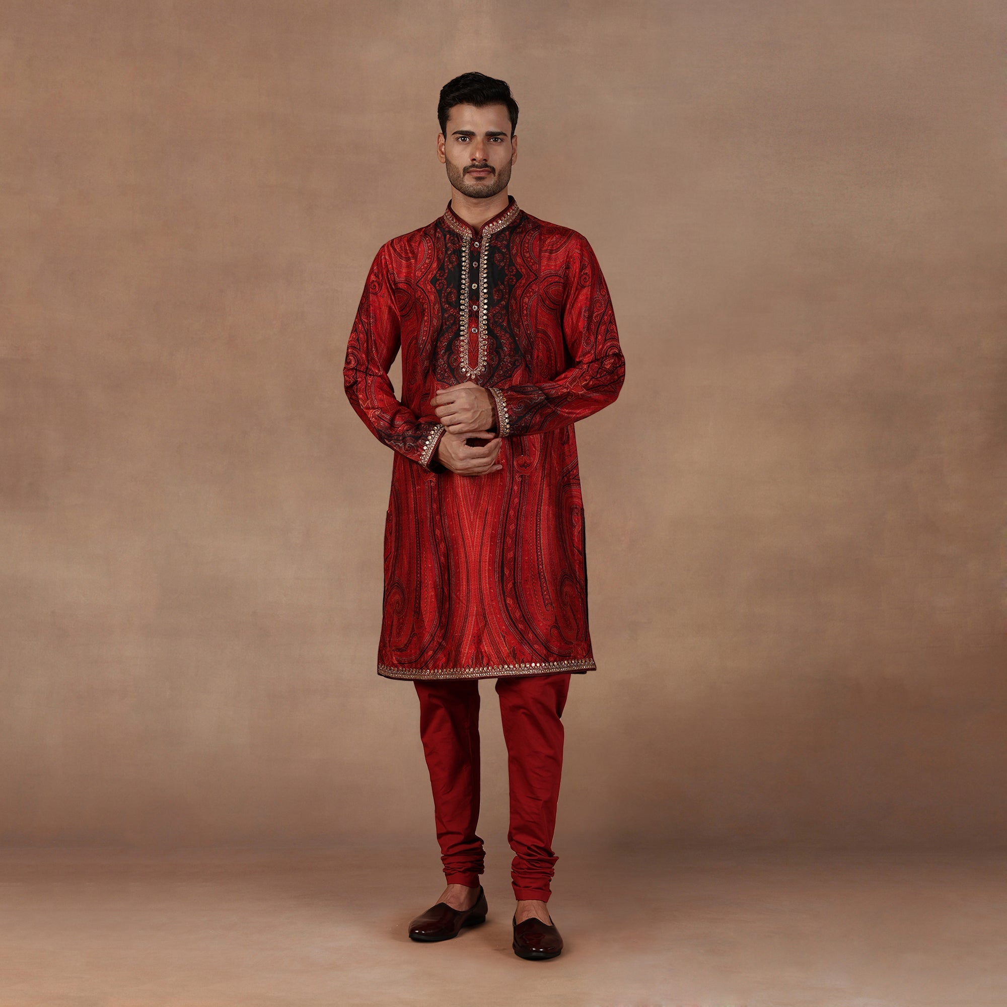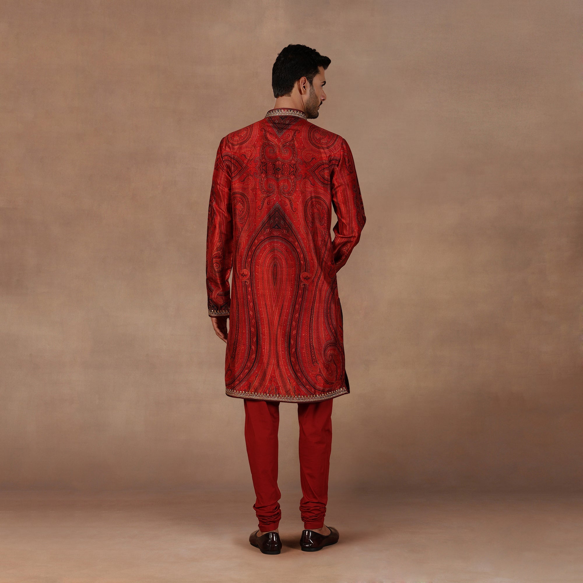 Red Jamawar Kurta Set | East