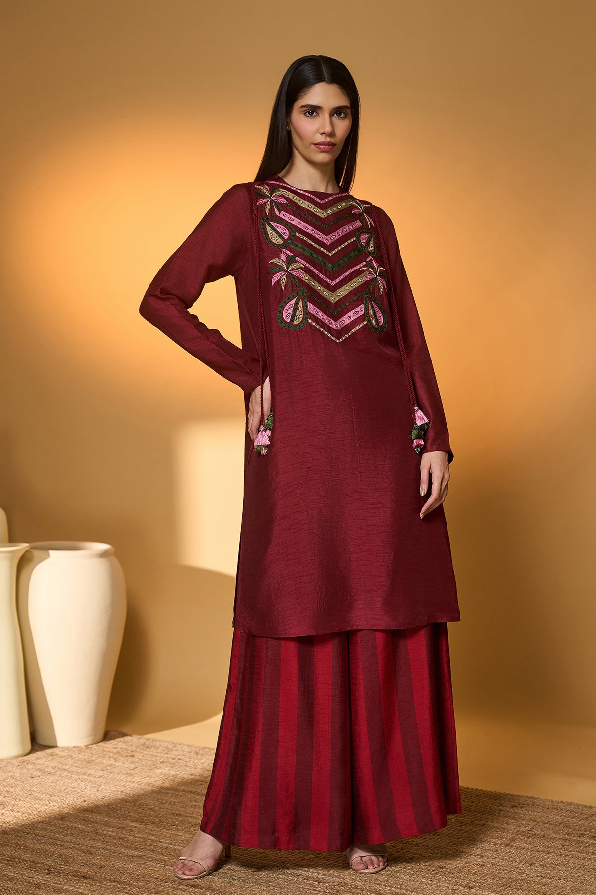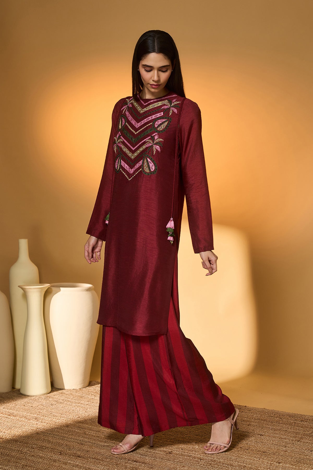 Maroon Pine-Code Co-Ord Set