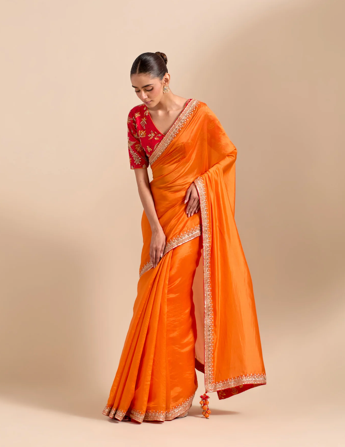 Surkh Laal Hand Embroidered Saree - Ready to Ship