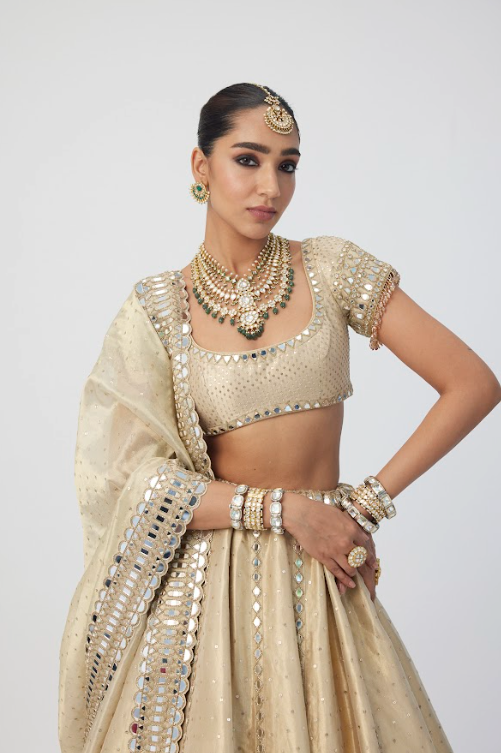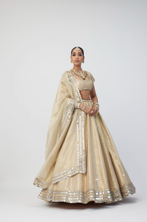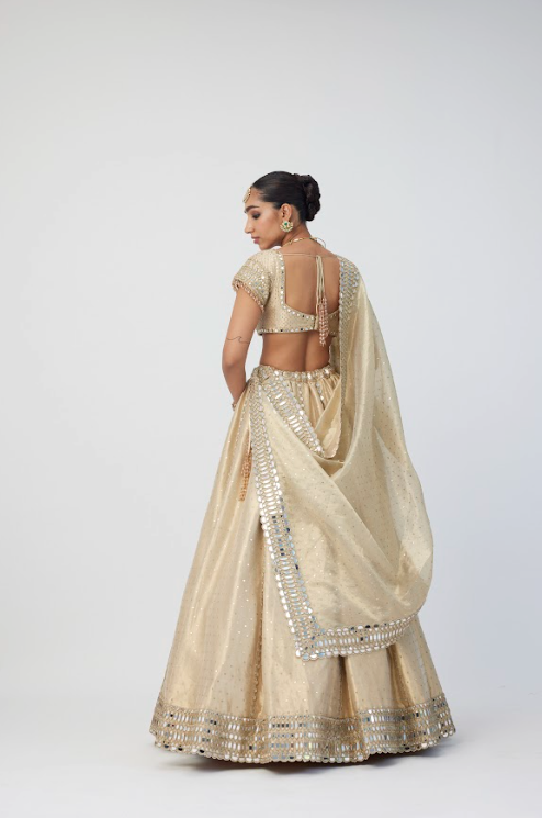Golden Shimmer Organza Linear Lehenga Set - Ready to Ship