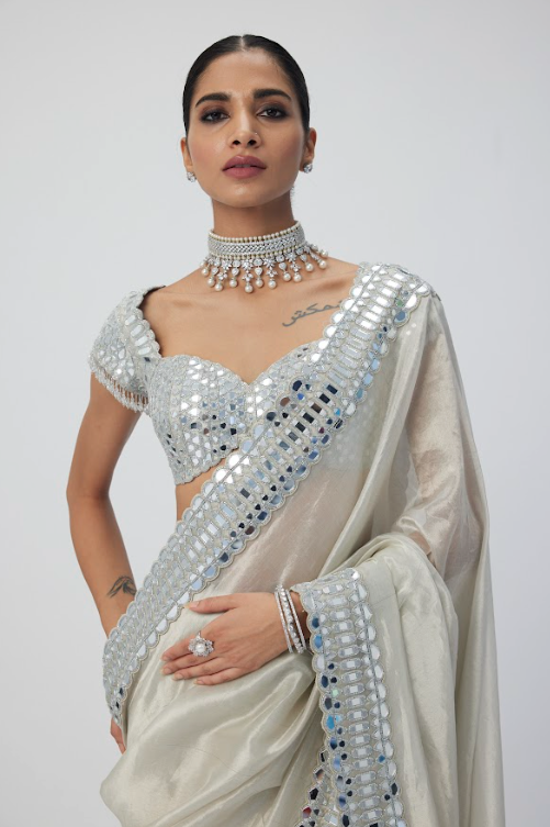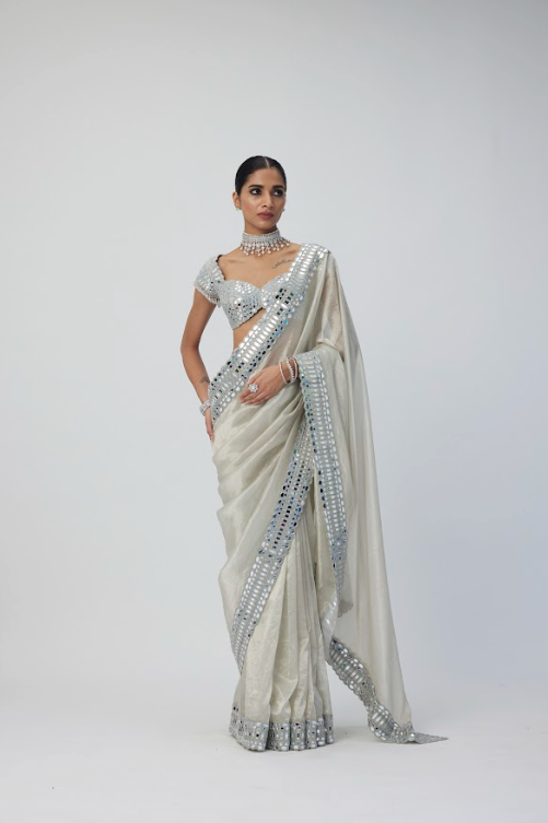 Golden Shimmer Organza Saree Set - Ready to Ship