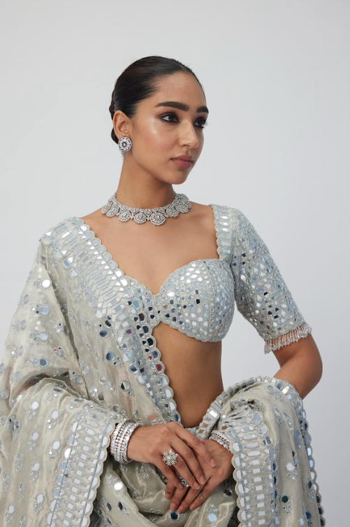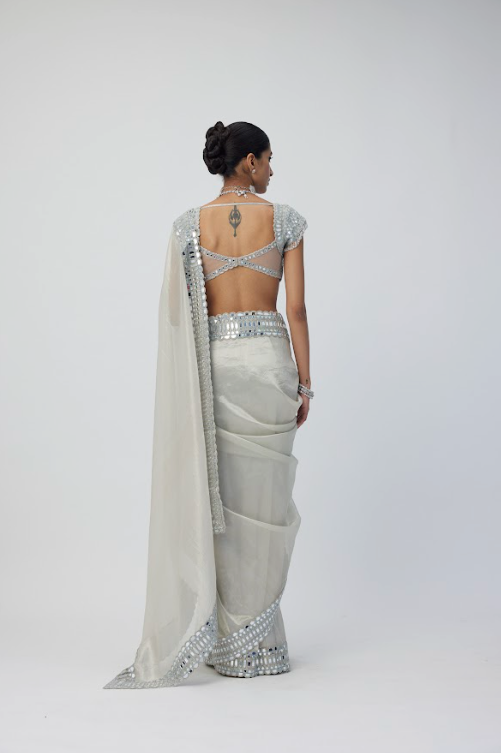 Copper Shimmer Organza Saree Set - Ready to Ship