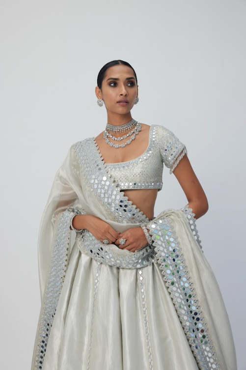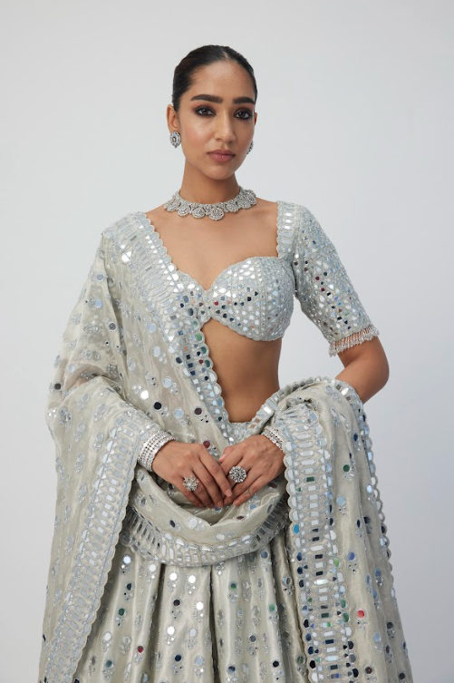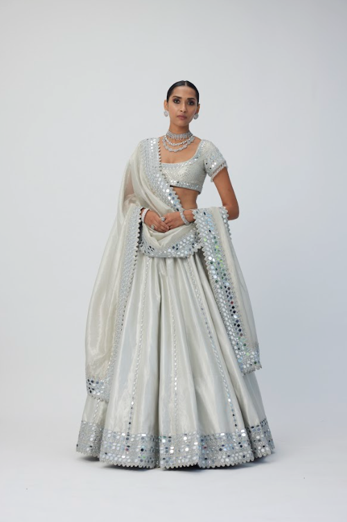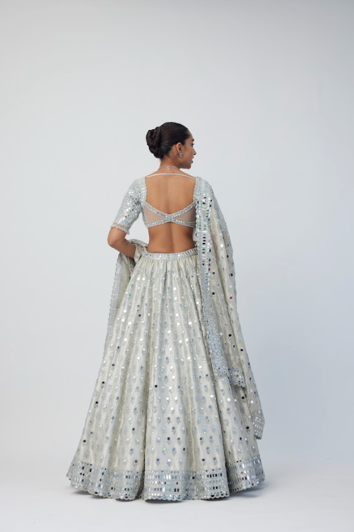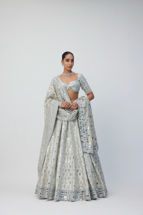 Copper Shimmer Organza Linear Lehenga Set - Ready to Ship