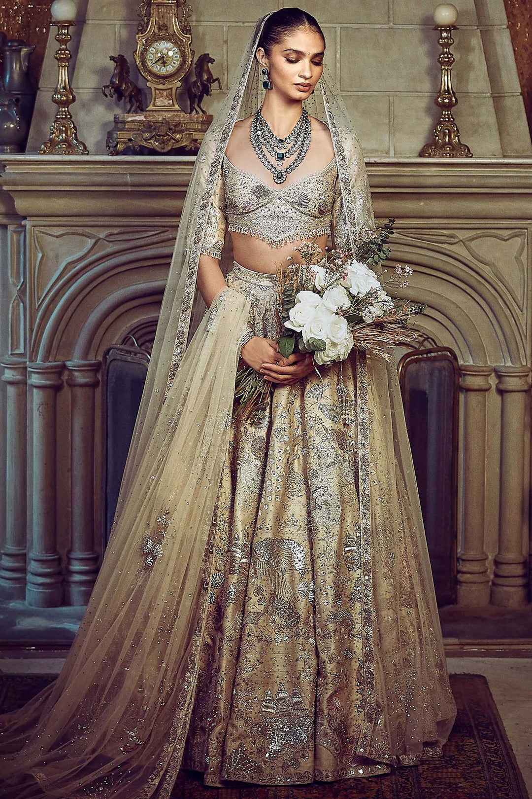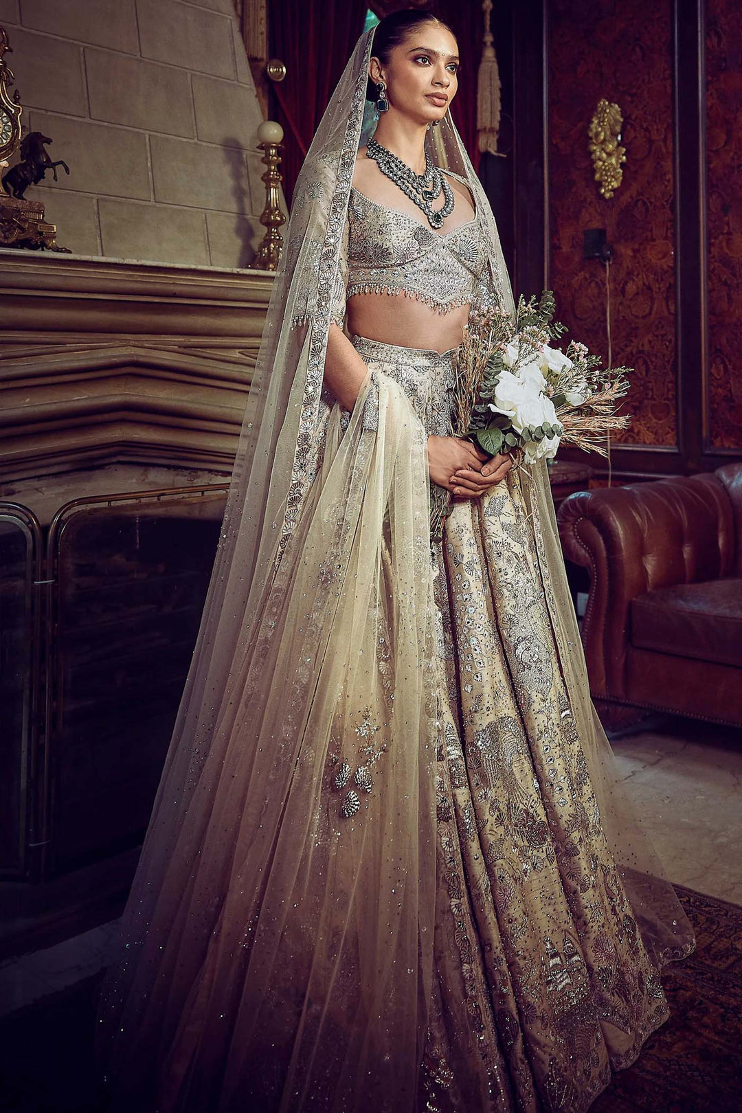 The Wild Ocean Ekru Lehenga