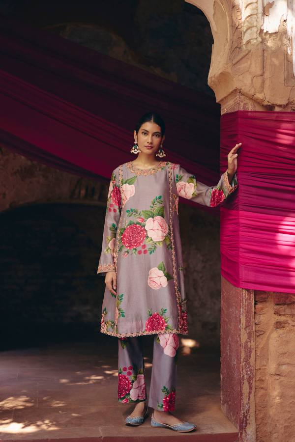 Grey Peacock Kurta – Pant Set