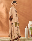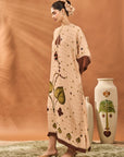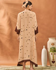 Kaftan- Beige clover checks kaftan adorned with patchwork on sleeve | Asymmetrical hemline | Tie-up detailing