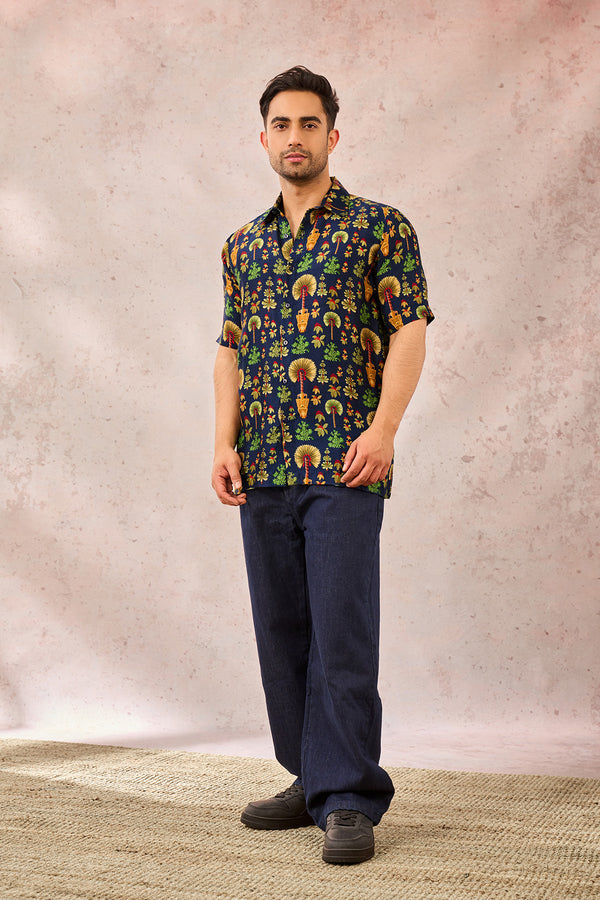 All over digital printed shirt | Standcollar | Front placket