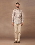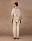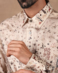 The Blush Ivory Shirt features a nomade-inspired print on a silk base in a soft blush ivory hue. Its design blends artistic detailing with a refined aesthetic.