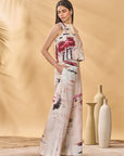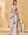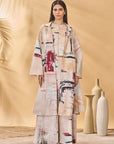 Waistcoat- Round neck | Front button closure | Straight fit. Pants- Straight bottom pants | Side pocket |Elastic at the back | Side zipper closure. Jacket- A line.