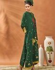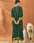 Kaftan- Green clover checks kaftan adorned with patchwork on sleeve | Asymmetrical hemline | Tie-up detailing