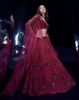 The sylvan lehenga set boasts a fully embellished design with floral and geometric artwork intricately adorned with tonal sequins and crystals. This special ensemble is exclusively crafted to enhance your unique wedding look.
